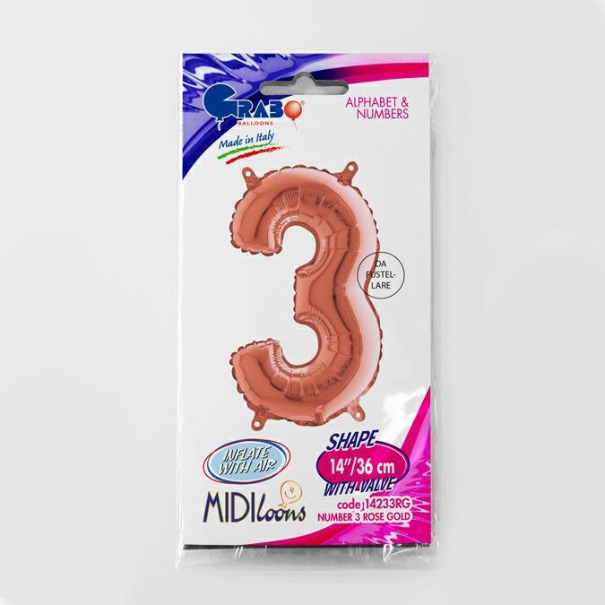 NUMBER 3 ROSE GOLD MINI FOIL BALLOON (142303RG-P)