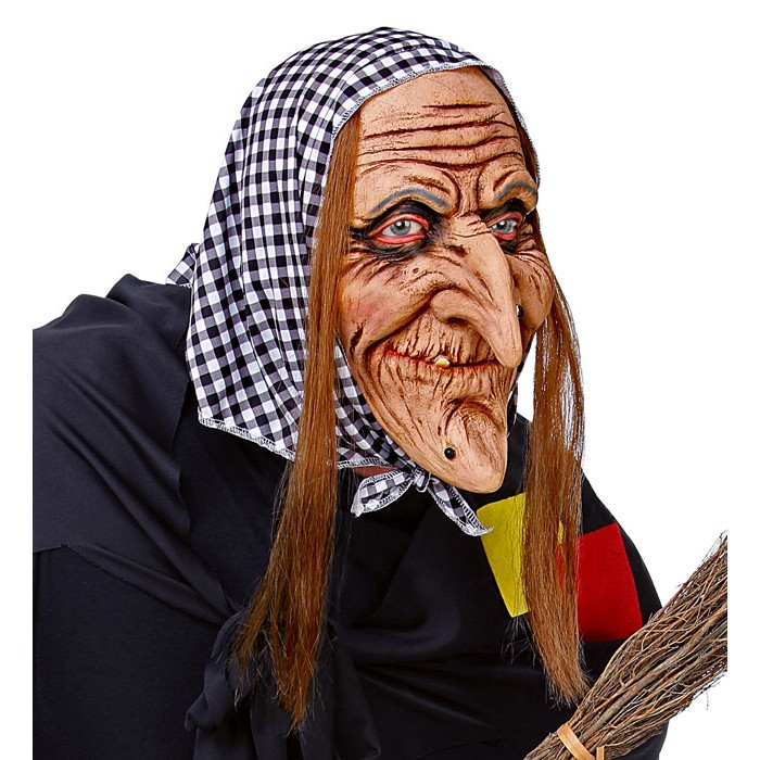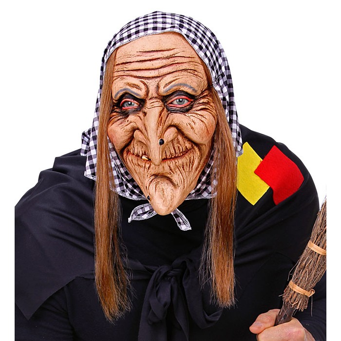 WITCH FULL HEAD MASK WITH HAIR & HEADSCARF (