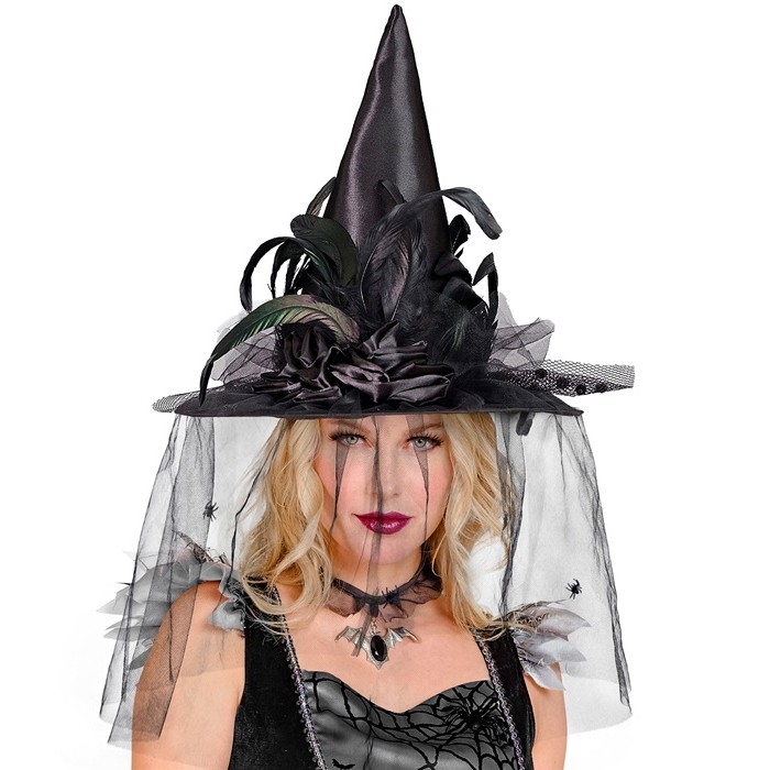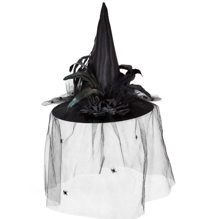 WITCH HAT WITH TULLE, FLOWERS & FEATHERS (